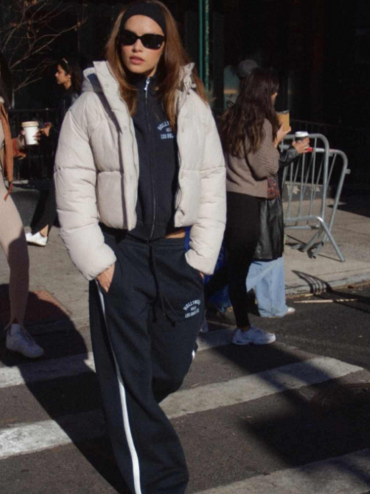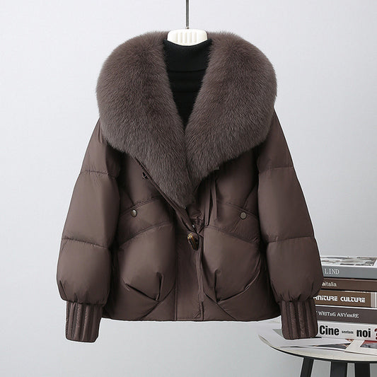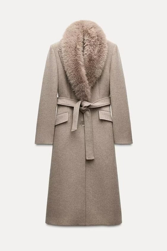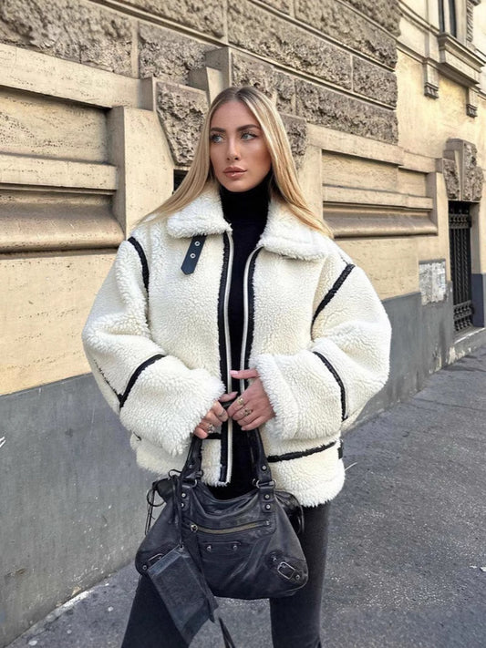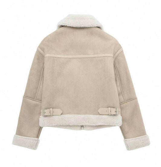 Helle Lederjacke mit Flauschkragen-Ärmel